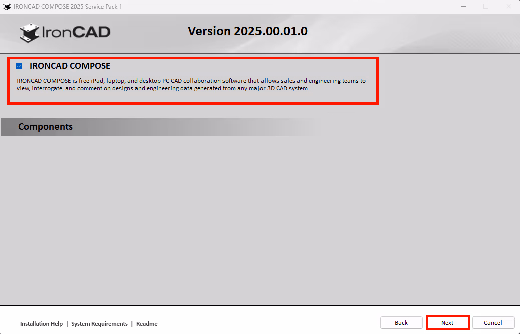 Se till att kryssrutan ovanför IRONCAD COMPOSE är i bockad.