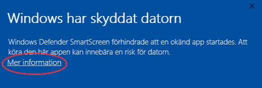 På vissa datorer kan denna information visas när man dubbelklickat på installationsfilen. Klicka då på Mer information.