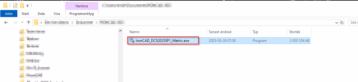Kör sedan själva installationsfilen i den nya mappen genom att högerklicka på *.exe-filen och välja Kör som administratör: