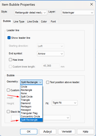 OBS! Saknar du denna stil eller vill lägga in en egen, tryck då på Add och gör dina ändringar här. För att få in en delad bubbla måste du antingen välja Split Circle eller Split Rectangle
