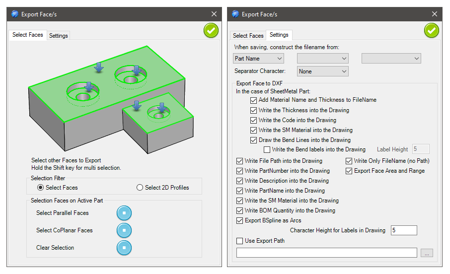 Use Export Path - Här kan du välja att alltid exportera alla filer (som skapas genom Face to DXF) till en och samma sökväg.