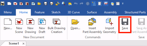 För att använda din egna mall, eller en annan av de standardmallar som finns att välja på, till nya 3D-scener så går du till knappen New... under fliken Home, välj alternativet Scene i fönstret, därefter OK.