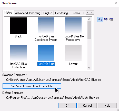 Markera där den 3D-mall som ska vara din standardmall och klicka på den avlånga knappen Set Selection as Default Template.