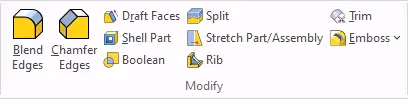 När det finns en solid 3D-geometri som skapats av t.ex. en Shape feature kan man modifiera dess form med en feature av typen Blend, Chamfer, Draft, Shell eller Trim. Dessa måste vara associativa (knutna) med en eller flera av de ytor/kanter/punkter (face/edge/vertex) som bygger 3D-geometrin i fråga. De kan självklart även läggas till på en importerad geometri som "enbart" består av BRep-data (Boundary Representation-data). En part kan aldrig bestå enbart av en Modification feature.