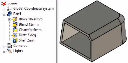 En Shape feature byggs upp från ett eller flera sketch-plan för att skapa en av de fyra "grundgeometrierna" Extrude, Spin, Sweep och Loft som går att skapa med i princip alla typer av 3D-modellerare (CAD-, CAM-system, 3D-print etc). En part kan bestå av en eller flera Shape features.