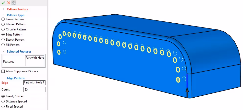 IronCAD Academy om Pattern feature: https://ironcad.academy/tutorial/pattern-feature