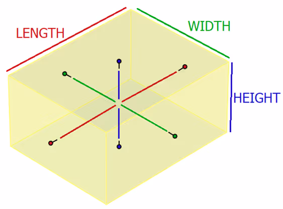 Men tänk på att Length, Width och Height representerar formen av en ”Sizebox” (precis som X, Y och Z representerar riktningar) och att de runda handtag som finns på var sida används för att "ändra storlek på denna virtuella fyrkantiga volymlåda”.